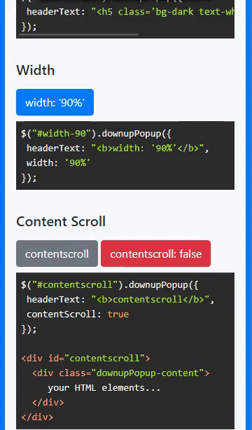 contentScroll: false // true, false -> for use, <div class="downupPopup-content"></div> have to inside the element