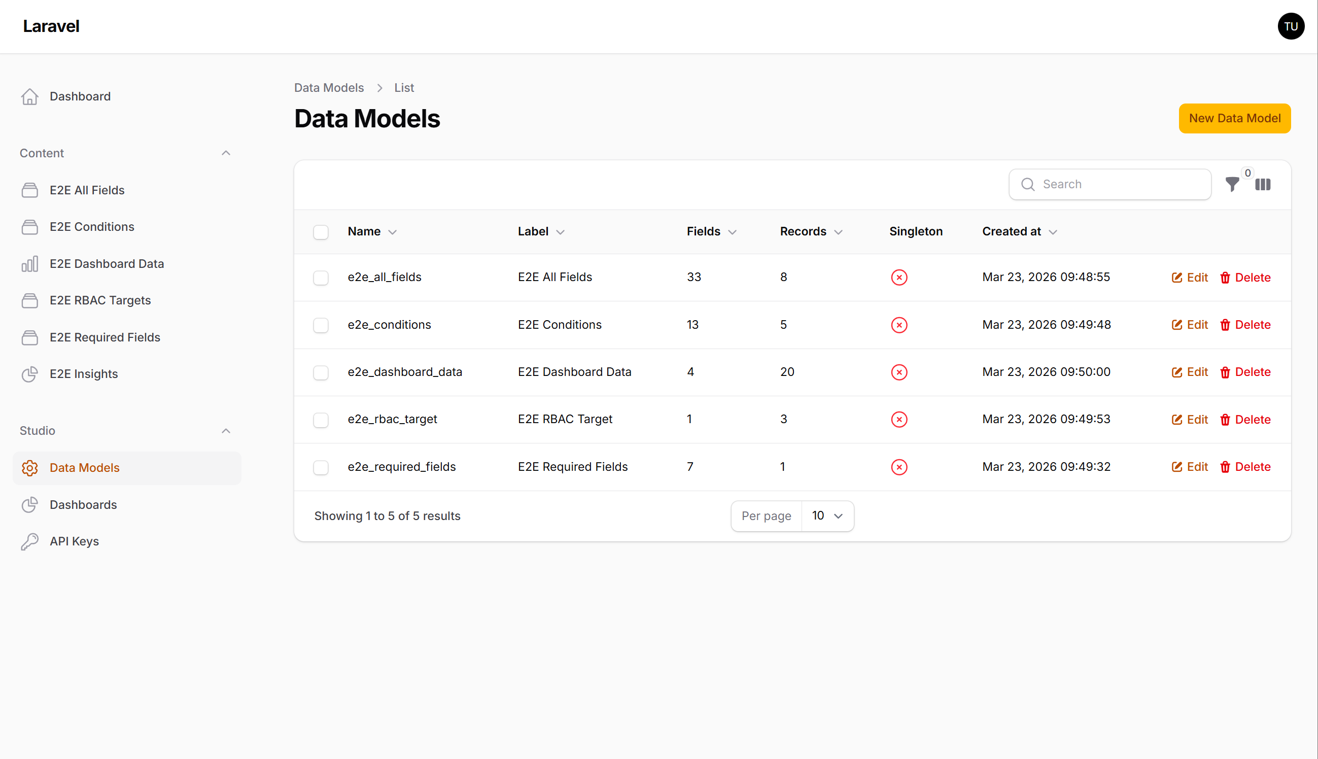A dynamic data model manager for Filament v5 — create collections, define fields, manage records, and build dashboards, all at runtime. No migrations required.
