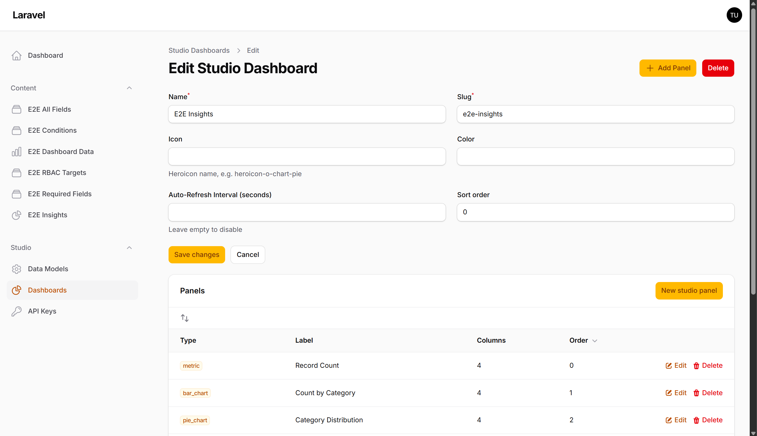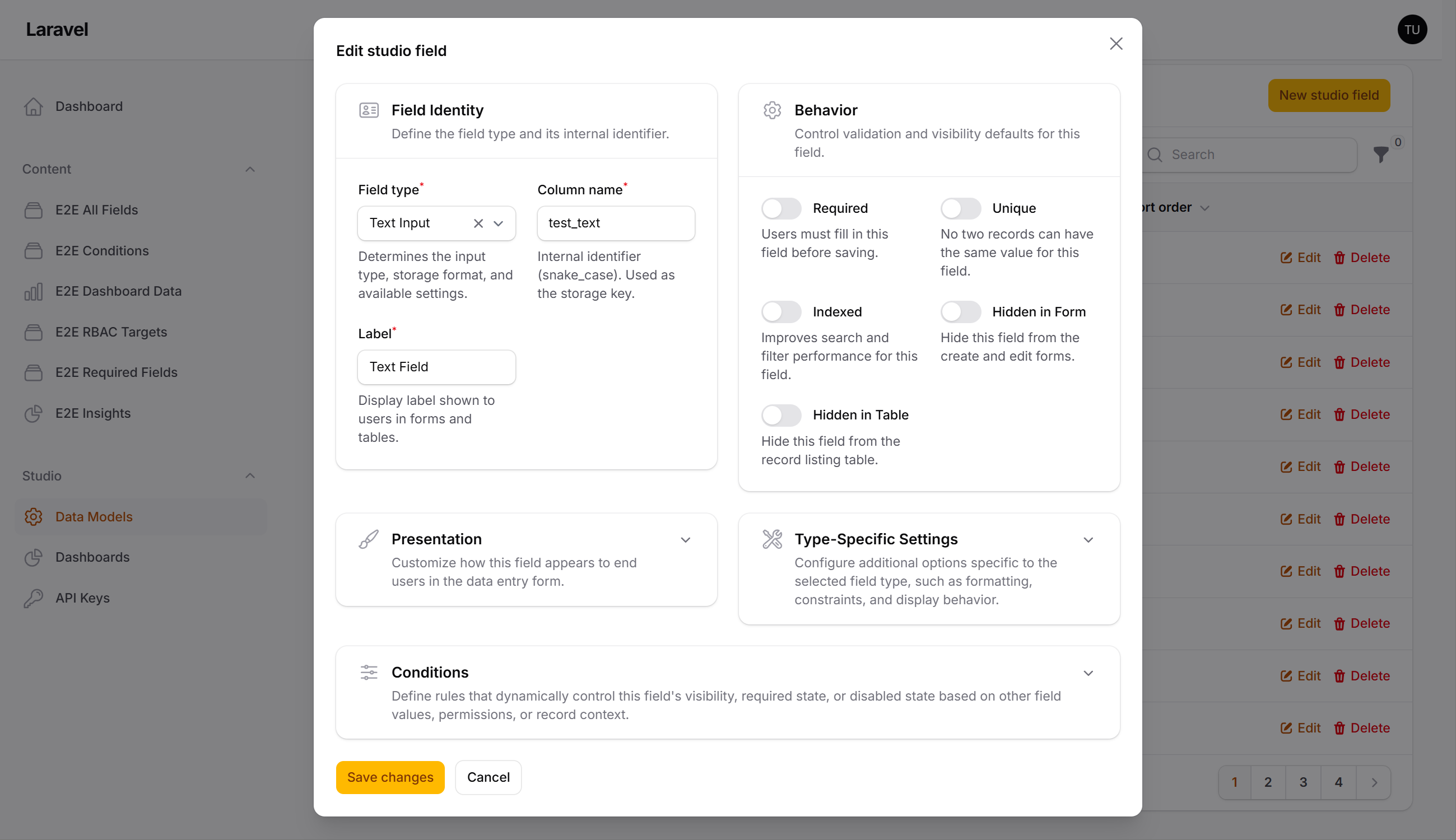 - Extensible — Register custom field types, panel types, condition resolvers, and lifecycle hooks