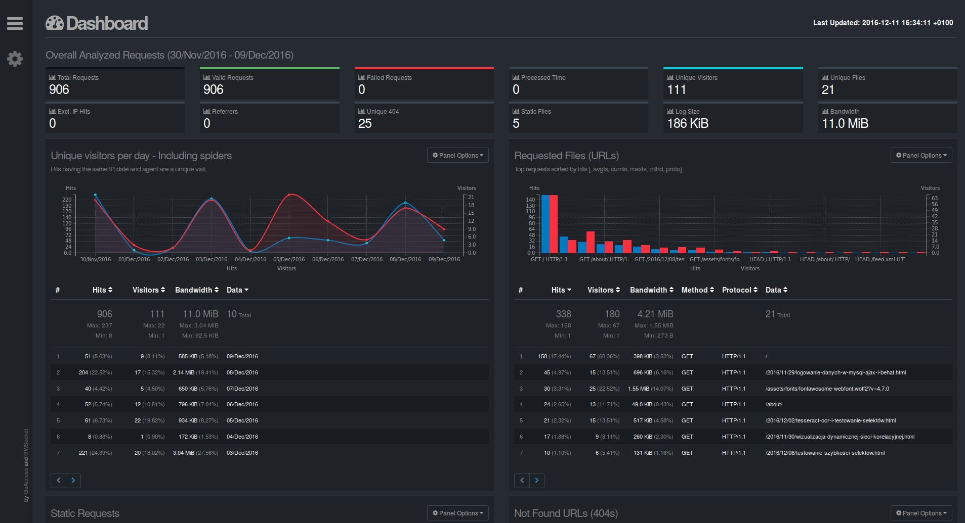 Panel for output of goaccess. It contain example of SPA with login and templating, access by API with content negotiation, and connectors between bash and yml and json.