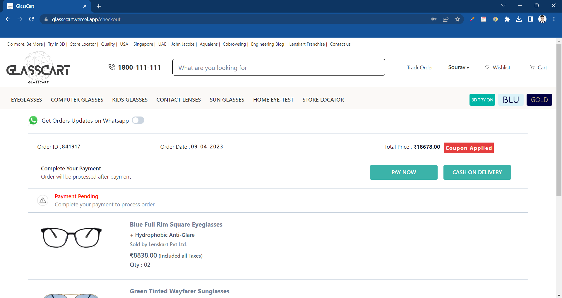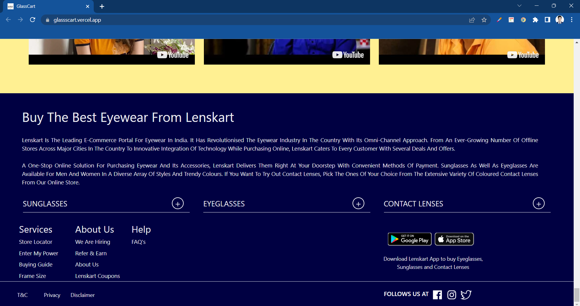 Lenskart.com is an Indian e-commerce company that sells eyeglasses, contact lenses, and sunglasses. The company was founded in 2010 by Peyush Bansal, Amit Chaudhary, and Sumeet Kapahi, and is based in Delhi. Lenskart has a wide variety of products and offers services such as free home trial and virtual try-on. The company has also has physical stores across India.