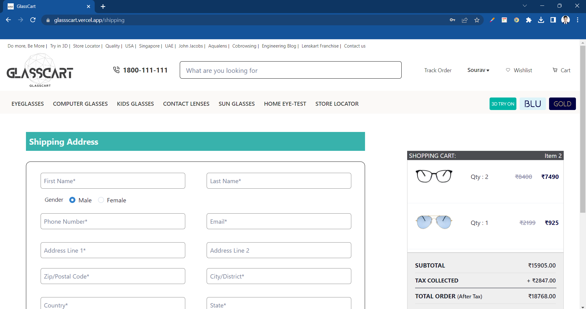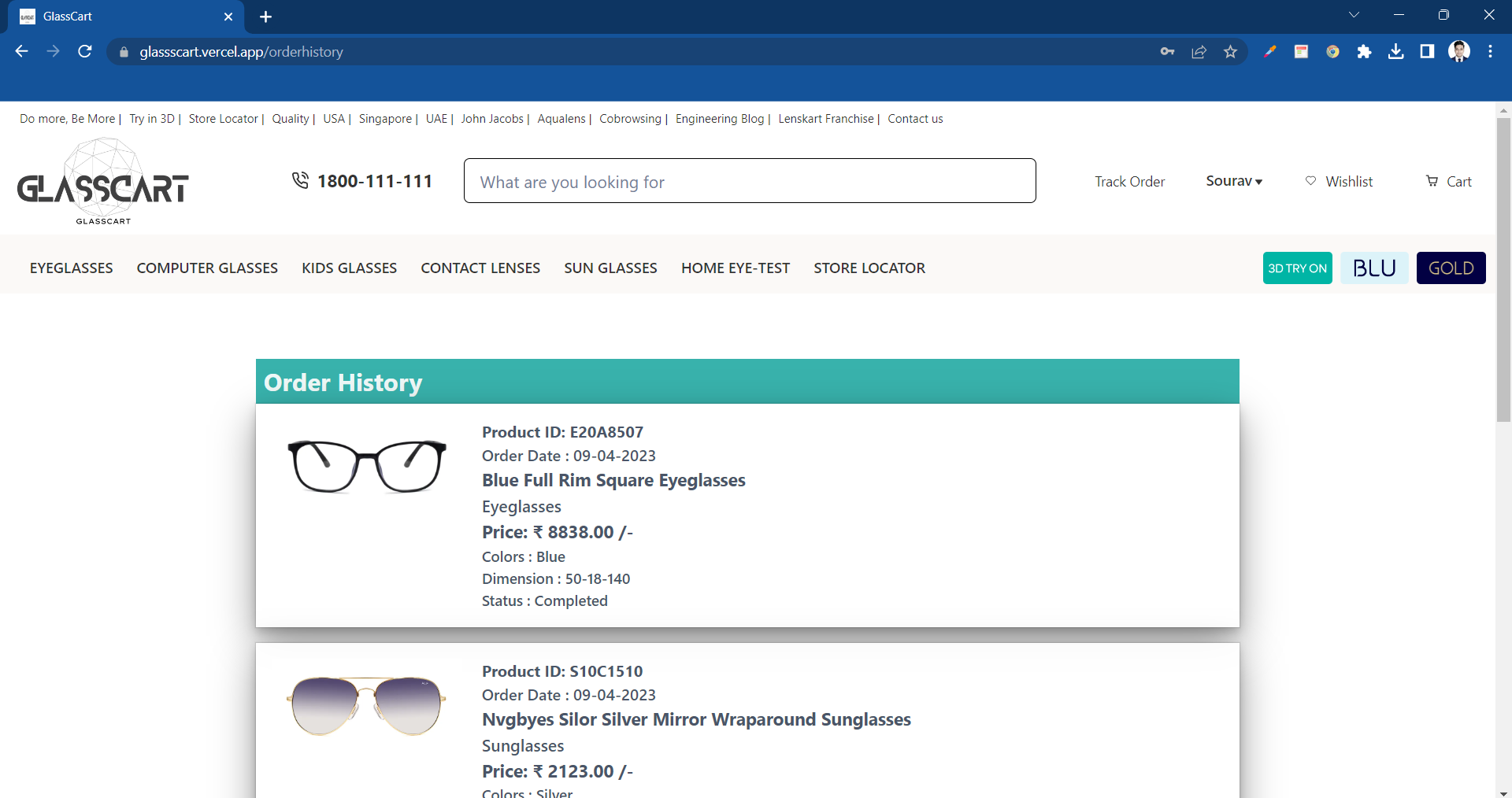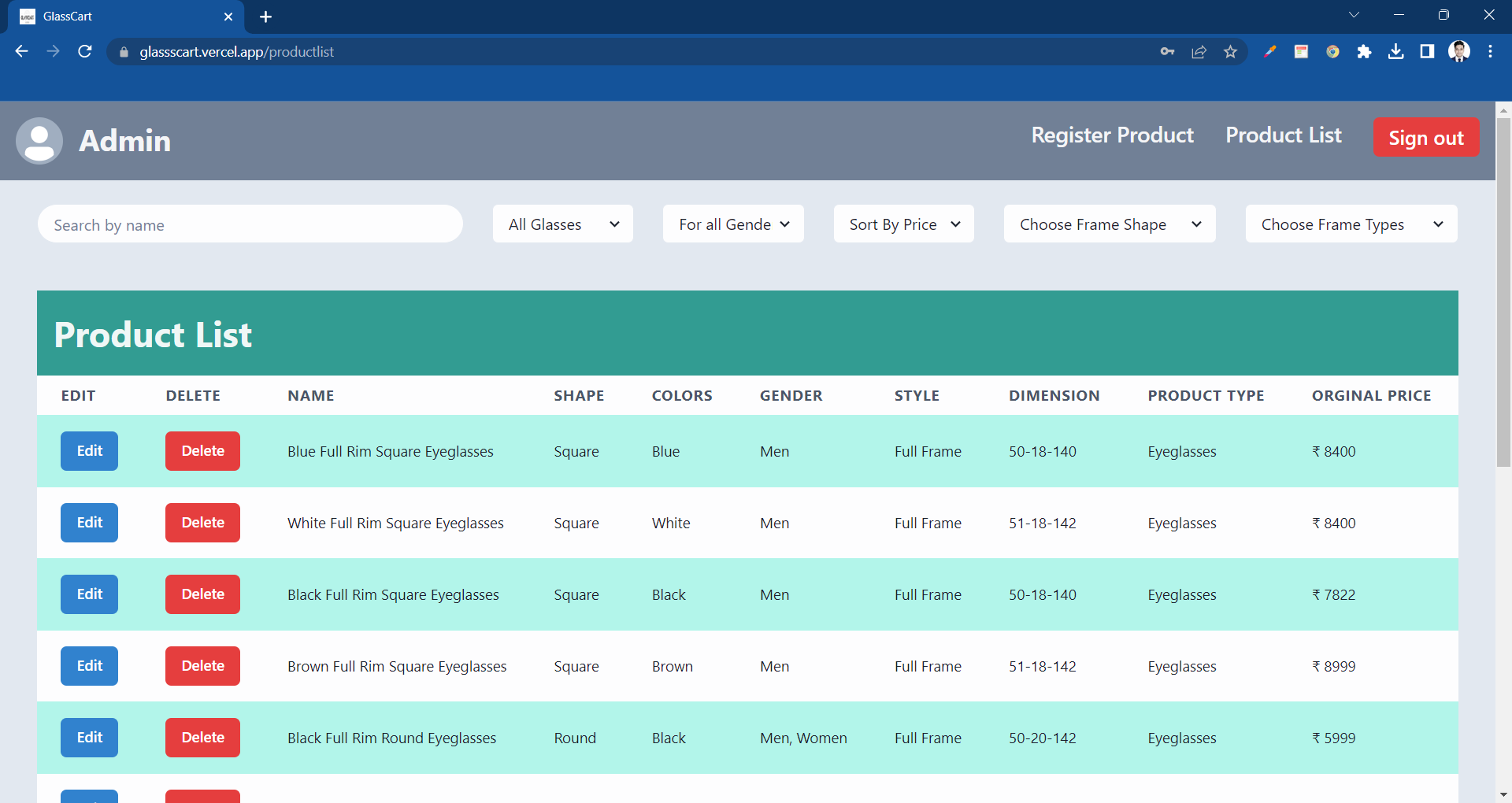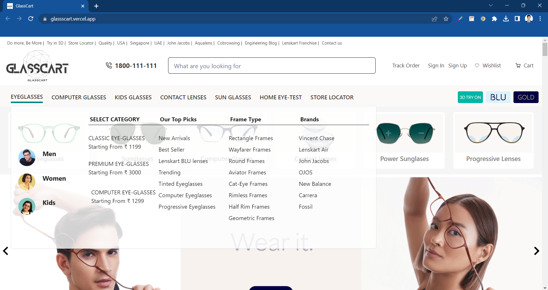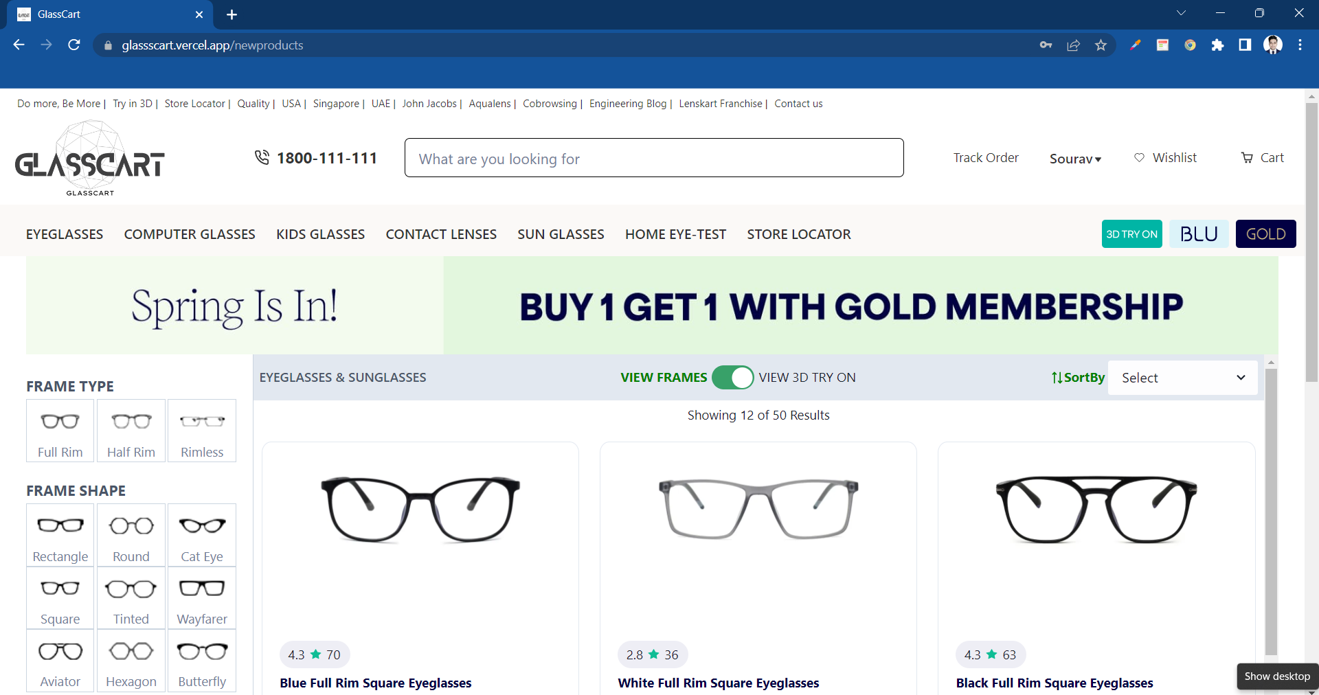 - Product Filters Based on Gender, Colour, Shape, Glasses Frame